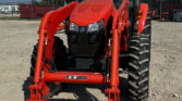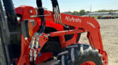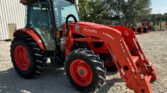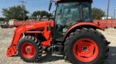 The 2021 Kubota M5-091D MFWD tractor has 202 hours and is powered by a 3.8L Kubota V3800 diesel engine with 92.5 HP and a synchro transmission (8F-8R) with left-hand reverser and differential lock. It features an enclosed cab with AC and heat. The tractor is equipped with a 540 PTO, three-point hitch with top link, seven-pin outlet, and two hydraulic remote sets. It includes a Kubota LA1854 loader with quick attach and joystick controls. The tractor is…